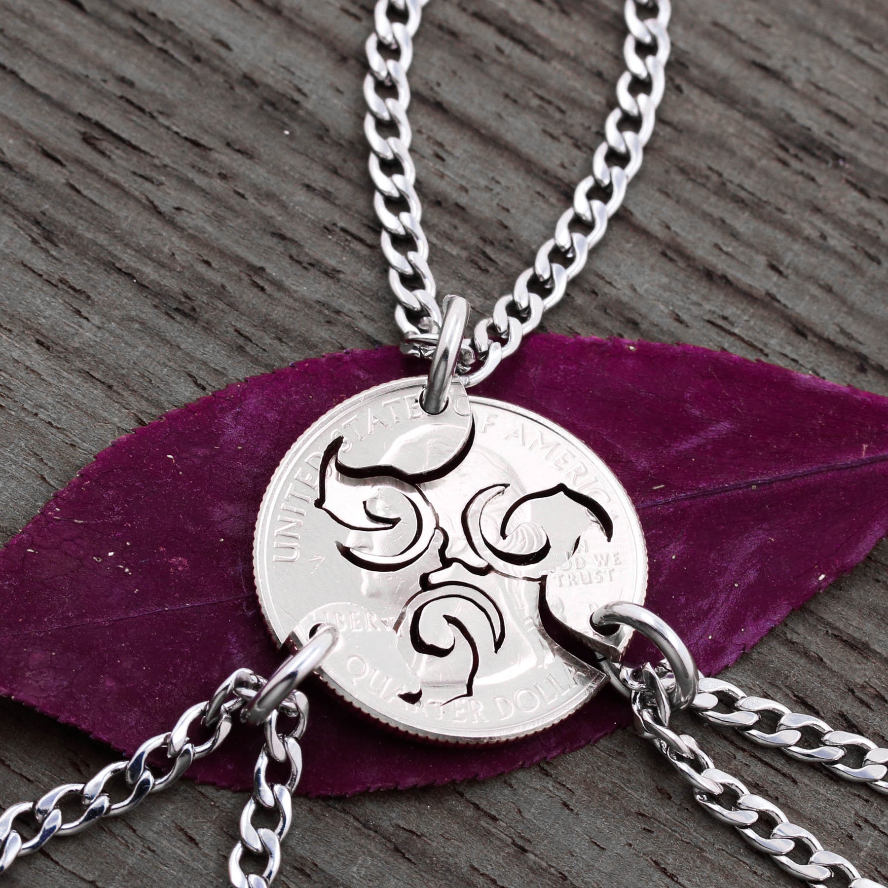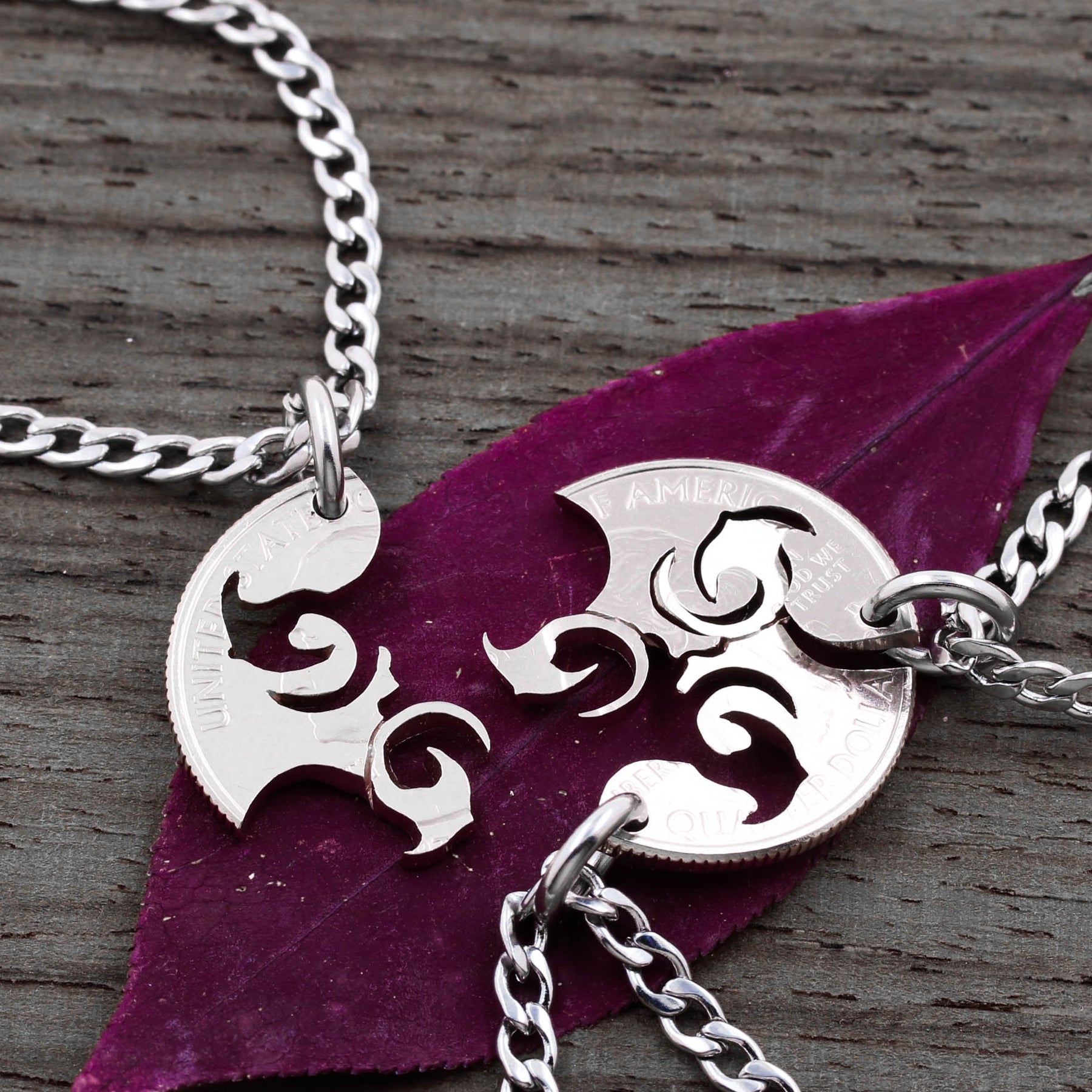 3 stingrays that are cut from the same coin! They will fit together perfectly.Your order will include three quality stainless steel necklaces, or if you request we can put some or all of them on key chains.