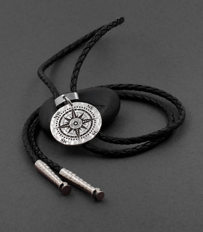 Silver Compass Bolo Necklace, Old Hammered Silver Coin